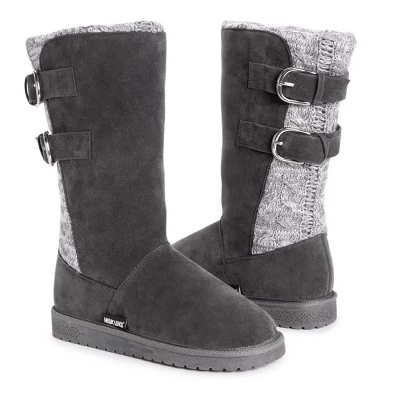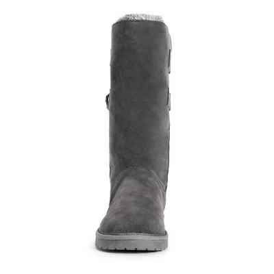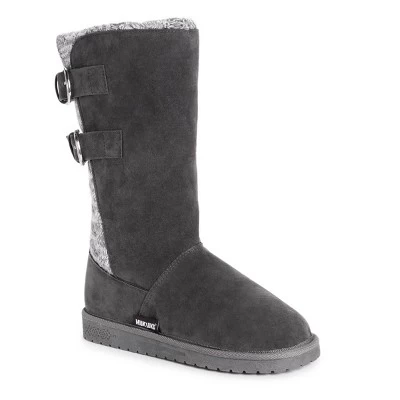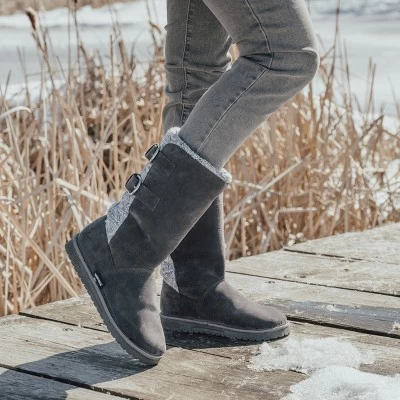 Fashion meets comfort & warmth with Essentials by MUK LUKS Women’s Jean Boots. This mid-calf pull on boot features faux shearling lining and functional buckle detail.Wipe with a damp cloth, no bleach, lay flat to dry. Imported.- Treaded TPR Sole- 100% Polyester Brushed Tricot Insole- 100% Polyester Faux Suede Upper- 100% Polyester Faux Shearling Lining- Foam Insole- Water Resistant- Multiple color options available- Women?s Whole Sizes 6-11- Half Sizes Size Up
