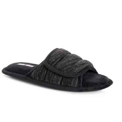 Slip on MUK LUKS Men’s Maverick Slippers for ultimate comfort. These adjustable velcro slippers are cushioned with cozy foam insoles to keep you comfortable while lounging indoors or outdoors. Wipe with a damp cloth. No bleach. Lay flat to dry. Imported.-TPR Indoor/Outdoor Sole-100% Polyester Insole- 86% Polyester, 14% Acrylic Upper-100% Polyester Lining-Foam Insole-Adjustable Velcro Closure-Men’s Whole Sizes S (8-9), M (9-10), L (11-12)-Multiple color options available